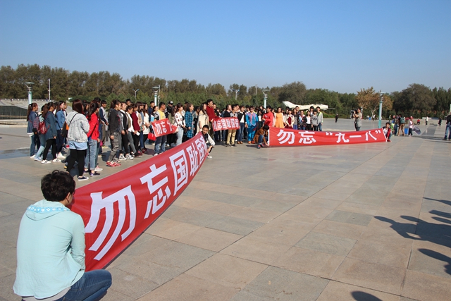 beats365唯一官方网站学生会主席李成说:“今年是抗日战争胜利69周年,也是中日甲午战争120周年,九一八事变83周年。日本数次发动战争,不仅给中国人民带来巨大灾难,也给全世界造成巨大创伤。历史不能歪曲,历史的悲剧更不能重演!勿忘九一八,勿忘国耻国殇。作为当代大学生,我们要知耻而后勇,以史为鉴,发愤图强,传播正能量,奋力共筑中国梦!”