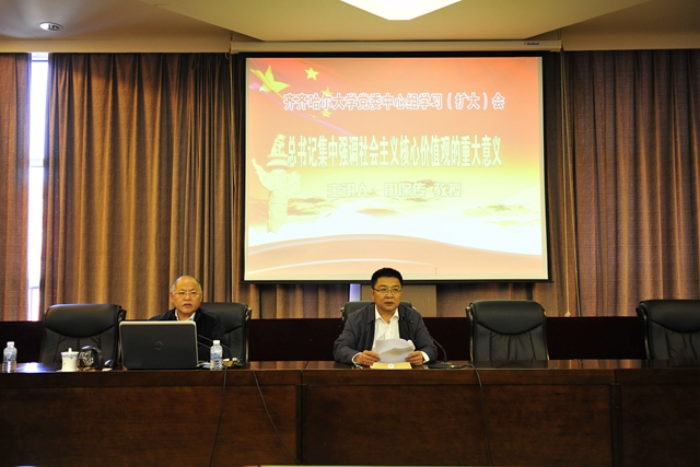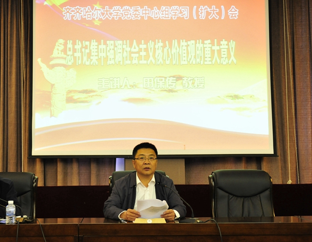 学校党委中心组学习(扩大)会议暨田保传教授《习近平总书记强调社会主义核心价值观的重大意义》的专题报告会由校党委书记李海红主持。