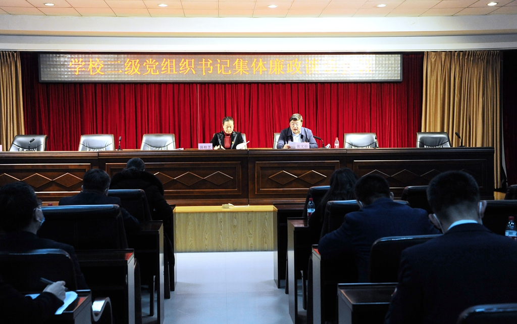 为进一贯初落实中共中央《关于加强对“一把手”和领导班子监督的意见》精神,强化党内监督,推进全面从严治党向纵深发展,按照省纪委工作要求,结合2021年学校全面从严治党工作会议部署,12月29日下午,学校在求实楼五楼会议室召开二级党组织书记集体廉政谈话会议。校党委书记陈桂芝、党委副书记张文治出席会议,校纪委办公室负责人、各二级党组织书记参加会议。会议由张文治主持。