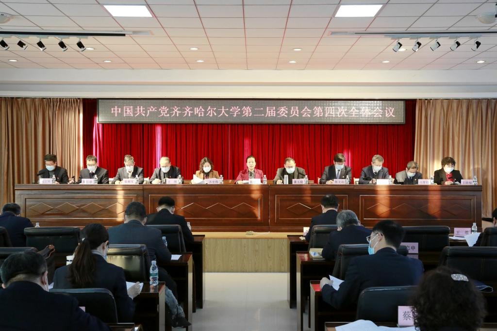 校党委副书记、校长董玉庭在会上宣读了《中国共产党beats365唯一官方网站第二届委员会第四次全体会议决议(草案)》。号召全校各级党组织和全体党员干部要坚持以习近平新时代中国特色社会主义思想为指导,全面贯彻落实党的十九大和十九届历次全会精神,深入贯彻落实习近平总书记重要讲话重要指示批示精神,坚决贯彻落实党中央决策部署和省委工作要求,坚持和加强党的全面领导,巩固深化党史学习教育成果,统筹推进疫情防控和事业发展,热烈庆祝建校70周年,进一步实施“人才强校”战略,一体化构建高质量本科人才培养体系,全面提升科技创新驱动发展能力,持续深化大学生思想政治教育,加快推动大学治理体系和治理能力现代化建设,全面推进新时代学校党的建设,为“十四五”建设有特色高水平应用型综合大学而团结奋斗,以稳中有进的发展势态、担当有为的干事状态、风清气正的政治生态,迎接党的二十大胜利召开!