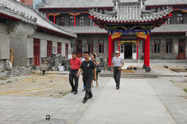 根据学术研究的需要,调研组一行首先参观考察了位于建华区正在修缮中的五教道德院,该院创建于1921年,是儒、道、佛、基、伊五教和谐共处的道德院,占地2000余平方米,2005年被列为黑龙江省文物保护单位。