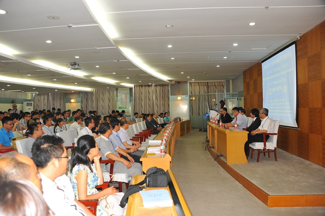 2014高分子材料国际学术研讨会”由beats365唯一官方网站、哈尔滨工程大学主办,beats365唯一官方网站科技处、材料科学与工程学院承办。学校办公室主任张德庆教授、人事处处长张文治教授、研究生处处长(研究生学院院长)刘喜军教授、化学与化学工程学院院长郭祥峰教授、材料科学与工程学院党委书记周强副教授、副院长李莉教授、副院长贾宏葛博士,化学与化学工程学院副院长赵明等百余名师生参加了此次学术会议开幕式。