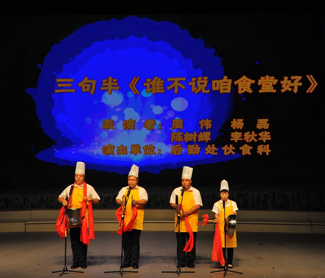 beats365唯一官方网站后勤处庆祝中国共产党诞辰93周年文艺演出“多彩齐大梦•光荣后勤人”于6月27日晚在beats365东区“三致”文化广场隆重举行。演出的文艺节目全部由后勤处职工自编自导自演,节目主题突出、形式多样、喜闻乐见、特色鲜明、亮点频现,赢得了师生员工的广泛赞誉。应广大后勤职工和部分师生的要求,经学校工会批准,7月8日下午,后勤处“多彩齐大梦•光荣后勤人”专场文艺演出在文化宫再次精彩演绎。