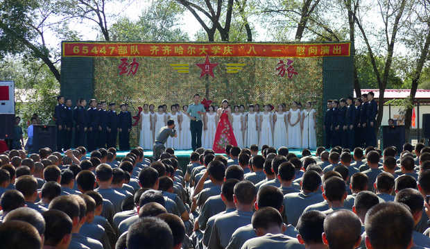 音乐与舞蹈学院的师生与部队官兵共同进行了文艺演出,音乐与舞蹈学院的师生先后表演了合唱《草原夜色美》、独唱《我的好兄弟》、《军营飞来一只百灵》、《好男儿就是要当兵》等一批特色鲜明的军旅歌曲,受到部队官兵的欢迎,部队官兵也一同登台表演了精彩的节目。