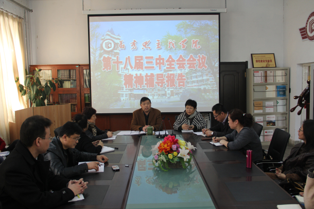 为深入学习领会党的十八届三中全会精神,全面开展教育思想大讨论,深化高等教育综合改革,推进高水平大学建设,按照学校党委《关于深入学习宣传贯彻党的十八届三中全会精神的意见》(齐大党字[2013]33号)要求,2月27日,校党委书记李海红在beats365学习贯彻习近平总书记系列重要讲话和党的十八届三中全会精神处级干部培训班上做了专题报告;自3月19日至4月8日,学校党的十八届三中全会精神宣讲团成员卜春江、于春梅、王树松、王晓梅、伊全胜、何春歧、何强、吴庆华、杨淳、樊友才等紧密结合学校“教育思想大讨论活动年”安排,走进基层、走进院系、走进师生,进行党的十八届三中全会精神专题宣讲。