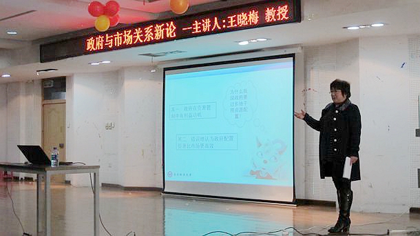 校宣讲团成员、校党委宣传部、统战部部长、社会科学处处长、硕士生导师王晓梅教授应邀为文学与历史文化学院、体育学院、音乐与舞蹈学院师生做了题为《政府与市场关系新论》的报告。她从政府与市场关系新定位、我国政府与市场关系的演变、为什么要充分发挥市场在资源配置中的决定性作用、市场如何在资源配置中起决定性作用以及确立市场决定作用的重大意义等五个方面,逐步展开对十八届三中全会经济思想的解读。报告全面深刻,深入浅出,使师生能够准确、系统领会全会精神,进一步明晰国家进一步深化经济改革的路径和重点所在。
