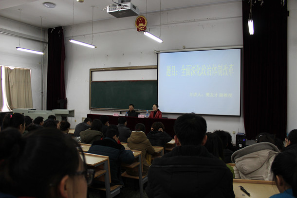 校宣讲团成员、哲学与法学学院院长、硕士生导师王树松教授应邀为材料科学与工程学院、机关党委、南学区、经济与管理学院师生作了题为《全面深化社会体制改革》的报告。他从全面深化社会体制改革的重要性、必要性和紧迫性上阐释了我国为什么要进行社会体制改革,以及全面深化社会体制改革的措施、方法和内容,师生们进一步明晰了国家进一步深化社会体制改革的路径和重点,充分认识了党的十八届三中全会的历史地位和重大意义,也更加深入、准确、系统地领会了全会精神。