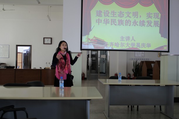 校宣讲团成员、马克思主义学院副院长、硕士生导师于春梅教授应邀为轻工与纺织学院、化学与化学工程学院、通信与电子工程学院师生作了题为《推进生态文明建设 实现永续发展》的专题宣讲。宣讲从四个方面分别对生态文明建设提出的背景及意义进行了立体化的阐释。重点对十八届三中全会提出的加快生态文明体制改革,建立生态环境损害责任终身追究制,健全自然资源资产产权制度和用途制制度,实行资源有偿使用制度和生态补偿制度等新的措施进行了深入细致的讲解。