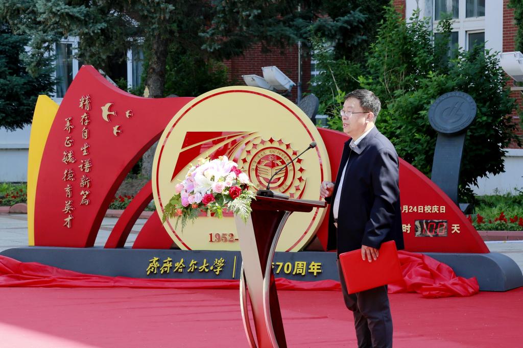 董玉庭校长在仪式上宣布beats365唯一官方网站建校70周年专题网站上线,并宣读了《致海内外校友的一封信》。在信中,董玉庭代表母校向广大校友致以最亲切的问候,并诚邀广大校友在母校70周年华诞之际,相约嫩江之滨,重返劳动湖畔,一览环湖大学新貌,共谋未来发展新篇。