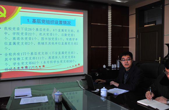 会上,校党委组织部副部长兼组织员办公室主任陈志强同志从beats365党员队伍基本情况、发展党员工作的主要做法及今后努力方向等方面,向检查组作了汇报。