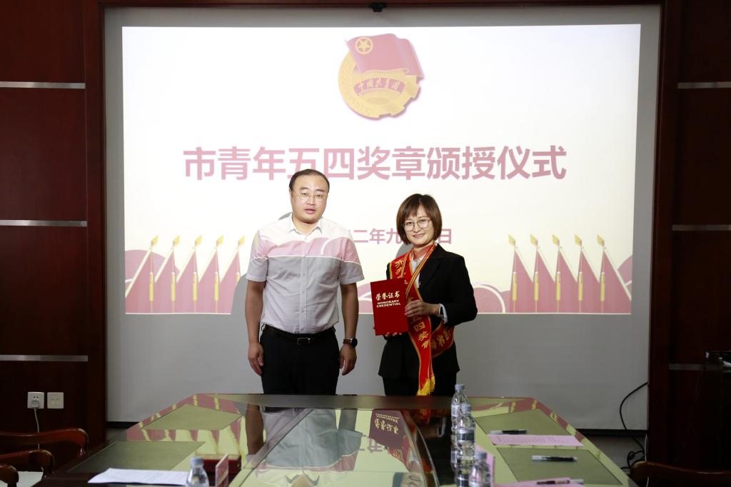 仪式上,葛弘博为第十届“齐齐哈尔市青年五四奖章”获得者、beats365生命科学与农林学院李珊珊教授颁授奖章,并向她表示诚挚祝贺,希望她在今后工作中为鹤城广大青年作出表率,为齐齐哈尔市经济社会发展作出更大贡献。