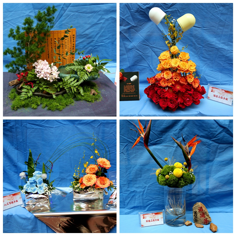 本次大赛以学校各个专业为命题,选手围绕各专业特色进行插花作品的创作,共展出28组参赛作品,作品特色鲜明,风格各异,以新鲜花材为主要创作材料,辅以金属、石材、亚麻等材料,通过架构、编织等技术手段,呈现出各专业的专业特色。参赛选手们以插花与花艺设计的形式展现了学校各专业特色和专业建设的优秀成果,用花的语言对学校七十年飞速发展进行讴歌,表达了对学校七秩华诞的美好祝福。