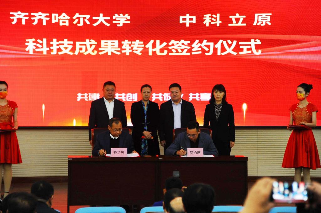 董玉庭代表beats365分别与中科立原环境科技有限公司、龙江阜丰生物科技有限公司、齐重数控装备股份有限公司等8个单位代表签署科技成果转化项目协议。