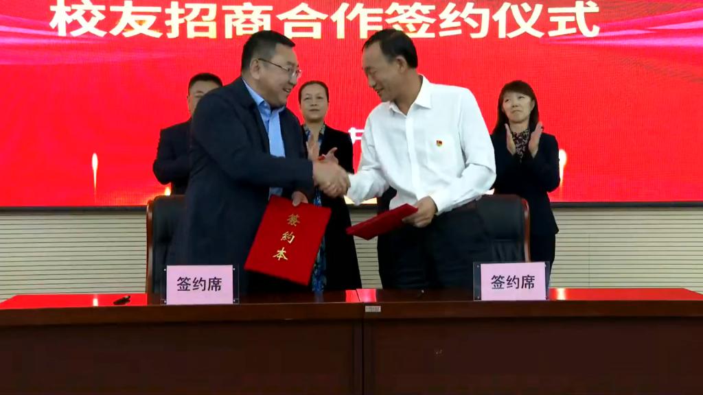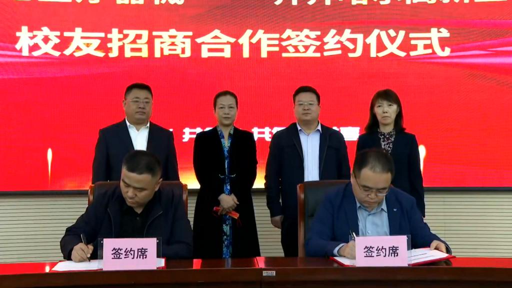 在校友招商签约环节,校友所在企业苏州大域无疆航空科技有限公司、威海临港泰燊置业地产公司、威海华迈医疗器械科技有限公司分别与齐齐哈尔市龙江县政府、建华区政府和高新区管委会签约。