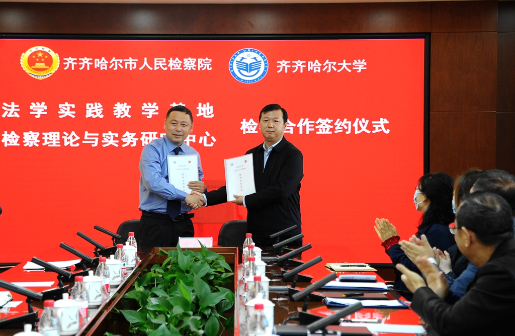 李奇楠代表beats365和市检察院党组副书记、常务副检察长乔海东签订了《beats365唯一官方网站 齐齐哈尔市人民检察院校检合作协议》。