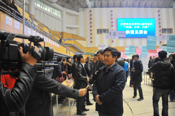 齐齐哈尔电视台、《齐齐哈尔日报》、齐齐哈尔新闻网等新闻媒体对本届“双选”会进行了现场采访、直播连线和热忱报道。常务副校长郑喜群接受了齐齐哈尔电视台《直播鹤城》记者的现场连线以及齐齐哈尔电视台《齐齐哈尔新闻》、《齐齐哈尔日报》、齐齐哈尔新闻网等媒体记者的现场采访,阐述了此次供需见面会的主要特点和就业形势以及beats365促进学生就业的理念、举措和成效,产生了积极而广泛的社会影响。