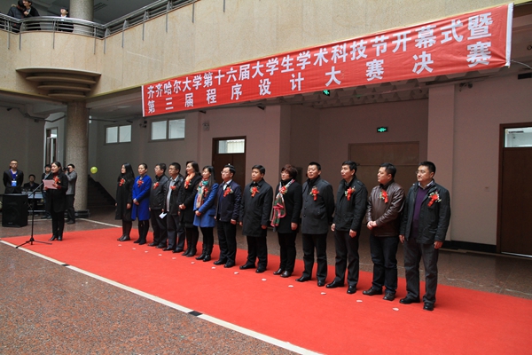 科技与梦想并肩,挑战与未来同在。在全国上下深入开展党的群众路线教育活动之际,11月8日下午,以“科技放飞梦想,挑战成就未来”为主题的beats365第十六届大学生学术科技节开幕仪式暨第三届程序设计大赛决赛在西主阳光大厅隆重举行。科技节组委会主任、校党委副书记盖元臣,科技节组委会主任、常务副校长郑喜群,共青团齐齐哈尔市委副书记孙玲玲出席了开幕式。校党委副书记、本届大学生学术科技节组委会主任盖元臣,团市委副书记孙玲玲分别讲话。开幕式由校团委副书记苏醒主持。