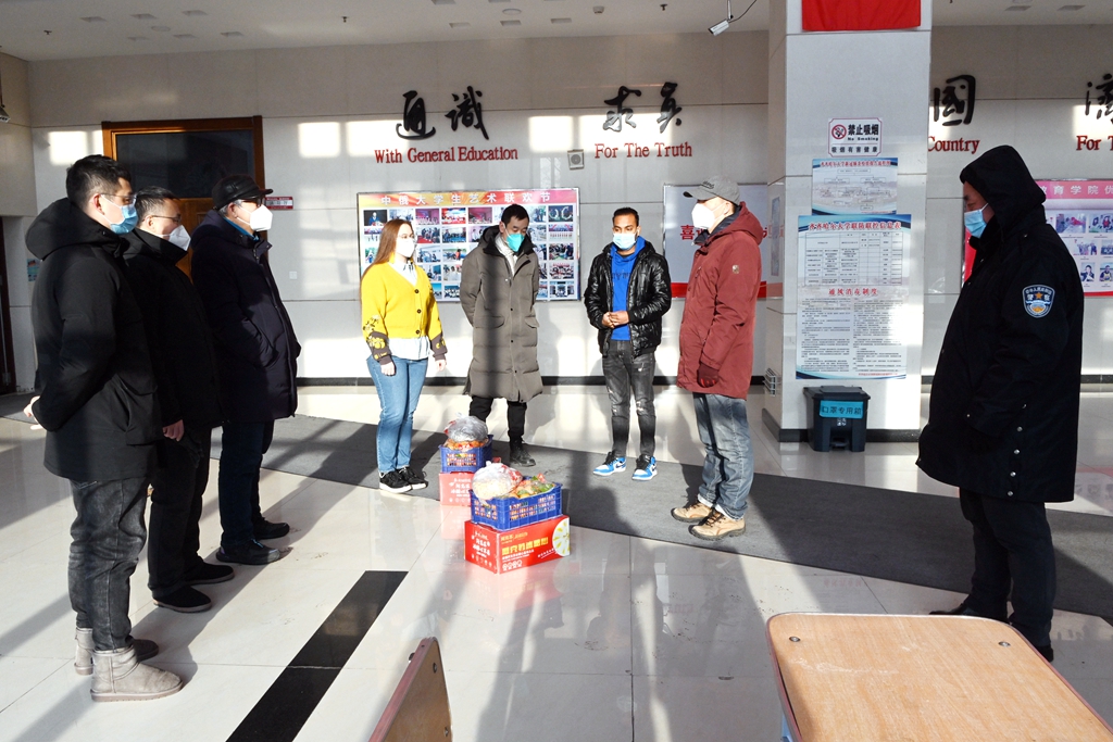 在看望慰问留校外籍师生时,校领导向他们致以亲切问候,充分肯定了他们在培养国际化人才、促进中外交流中作出的贡献,并悉心询问了他们的工作、生活和学习情况,叮嘱他们注意身体健康,做好疫情防护,祝他们度过一个平安、祥和、喜庆的中国兔年。