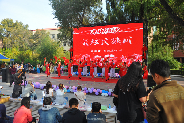 优美的歌声在三致广场飞扬,绚丽的舞蹈在LED大屏幕前的舞台上尽展中外学生的风采,劲爆的现代舞《布尔列斯克》、歌舞串烧《江南style》激情炫动,东北二人转、大秧歌韵味十足,双人舞《游园惊梦》演绎穿越古今中外的至真情感……一个个精彩纷呈、中西文化韵味浓郁的精彩节目,让三致广场洒满欢乐的笑声、涌动和谐的乐章,成为美丽齐大一道靓丽的文化风景。