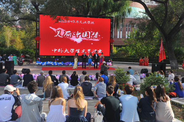 9月22日,校党委书记李海红、副校长吕晓辉与国际合作与交流学院200余名中外学生在“三致”文化广场载歌载舞,携手联欢,以歌曲、舞蹈、小品等多种形式喜迎“十一”国庆节,演绎心中的“青春梦想”。校党委宣传部、学生工作部(处)、校团委、外事处、国际合作与交流学院等单位负责人、部分外教一起观看了中外学生的联袂演出。齐齐哈尔电视台等媒体记者进行了现场采访并予以热忱报道。