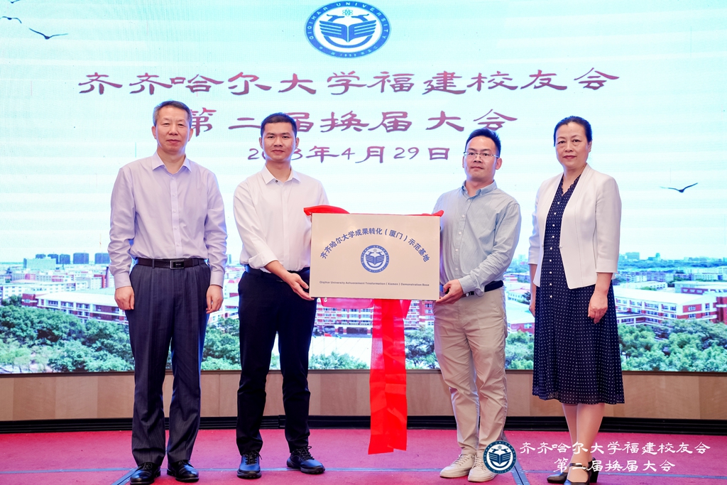 走访调研过程中,陈桂芝一行应邀出席福建校友会换届大会并为齐大成果转化(厦门)示范基地揭牌。她代表学校向福建校友会的成功换届表示祝贺,对福建校友会近年来开展的工作给予充分肯定,鼓励新一届理事会在新起点勇担新使命,展示新风采,在助力校友成长、支持母校发展、服务地区繁荣方面再创佳绩。她还代表学校向福建校友会赠送了《beats365唯一官方网站赋》竹简,同时欢迎福建校友常回母校看看,再叙师生情谊、共谋学校发展。