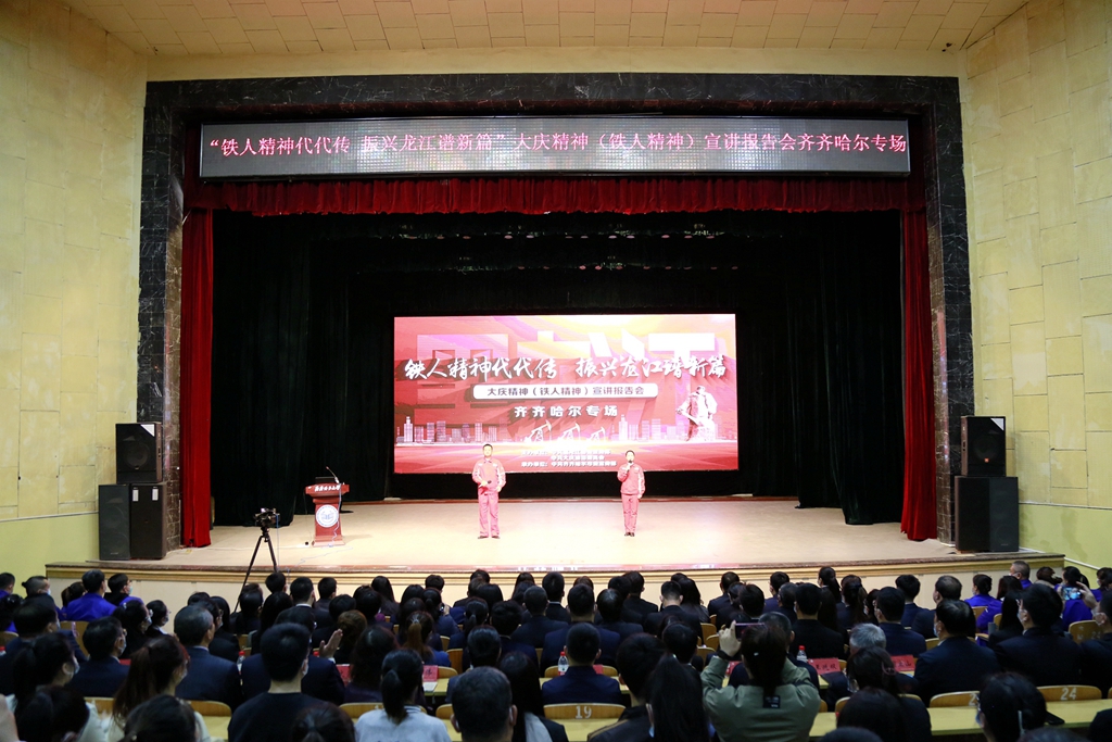 为扎实推进beats365学习贯彻习近平新时代中国特色社会主义思想主题教育,贯彻落实全省深化能力作风建设“工作落实年”活动要求,教育引导广大师生从大庆精神铁人精神和“三老四严”优良传统等红色基因中汲取精神力量,5月19日上午,由中共黑龙江省委宣传部、中共大庆油田委员会联合主办的“铁人精神代代传 振兴龙江谱新篇”大庆精神(铁人精神)宣讲报告会齐齐哈尔专场在beats365文化宫举行。