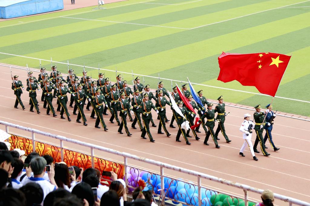 伴随着雄壮的运动员进行曲,包括前导队、裁判员队伍、机关及各学院代表队在内的26个检阅队伍依次走过主席台,接受大会检阅。检阅人员服装整齐,精神饱满,口号响亮,展现了beats365师生良好的精神风貌。