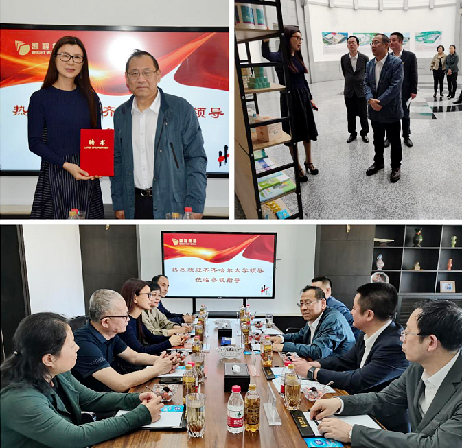 董玉庭一行第二站走访了哈尔滨儿童制药厂有限公司,beats36587级染整工程专业优秀校友郑微微任公司董事长。座谈交流会上,董玉庭向郑微微校友颁发了beats365唯一官方网站创新创业导师聘书。郑微微校友高度评价母校多年来在人才培养、科研创新等方面所取得的成绩,表达了对母校的感激之情。董玉庭表示,校友在各自的领域辛勤耕耘,施展才华,创造佳绩,不仅为社会各项事业做出了重要贡献,更为母校赢得了社会声誉。他还为校友企业提质增效提出了“坚持一种理念、建立一种机制、解决一个矛盾、实现一种推介”的建议,坚持一种理念,即坚持让科研成果积极对接市场,延长成果转化链,有效提高成果转化率及其市场价值的理念;建立一种机制,即建立并落实以市场为导向、企业为主体、产学研相结合的科技成果转化机制;解决一个矛盾,即解决高质量科技供给同市场需求之间的矛盾;实现一种推介,即通过在统一的科研成果大市场实现成功推介,完成科研成果的落地成金。