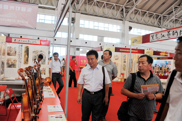第八届中国·龙江国际文化艺术产业博览会由省委宣传部、中国工艺美术协会、省文化厅、省新闻出版局等单位共同主办,由黑龙江日报报业集团、黑龙江出版集团等协办,以“艺术美化生活,文化创造财富”为主题,设国际标准展位1400余个,布展面积达4.8万平方米,来自法国、俄罗斯、比利时、韩国等10个国家及国内30余个省(市)400多位知名艺术家,国内外文化艺术单位1000余家,近十万件艺术品参展,盛况空前。