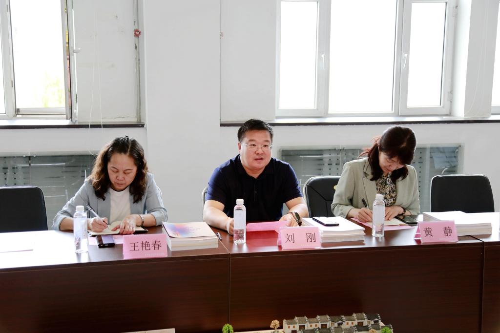 刘刚一行在艺文楼四楼会议室召开创意设计工作交流座谈会,学校办公室、科研处、校团委、研究生部负责人及美术与艺术设计学院领导班子、学科带头人、相关专业系主任、研究生导师和教师代表参加座谈,座谈会由丛喜权主持。