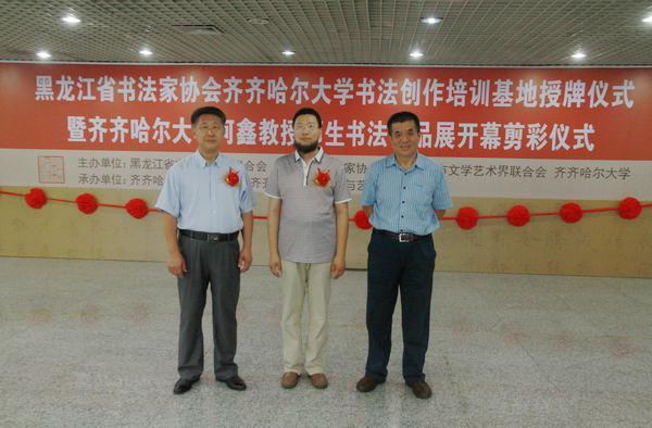 7月15日上午,“黑龙江省书法家协会beats365唯一官方网站书法创作培训基地授牌暨何鑫教授师生书法作品展开幕仪式”在beats365唯一官方网站美术馆隆重举行。这次活动由黑龙江省文学艺术界联合会、黑龙江省书法家协会、齐齐哈尔市文学艺术界联合会、beats365唯一官方网站主办,齐齐哈尔市书法家协会、beats365唯一官方网站美术与艺术设计学院承办。