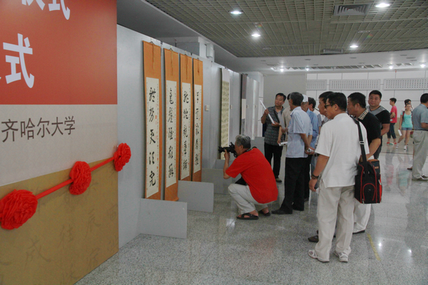 仪式结束后,出席仪式的领导、嘉宾和师生、群众一道欣赏了书法作品。