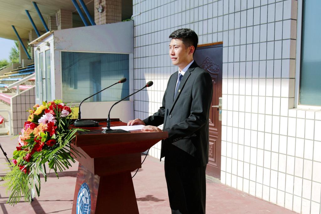 生命科学与农林学院院长、龙江青年学者王志刚教授作为教师代表发言。他回顾了在齐大多年砥砺科研的工作经历,分享了对校训、校风、齐大精神的思考和理解,勉励全体新生饮水思源、心怀感恩,谨记齐大校训、践行齐大精神、传承齐大校风,在新的征程筑梦齐大、逐梦齐大、圆梦齐大,努力成为引领新时代的奋斗者。