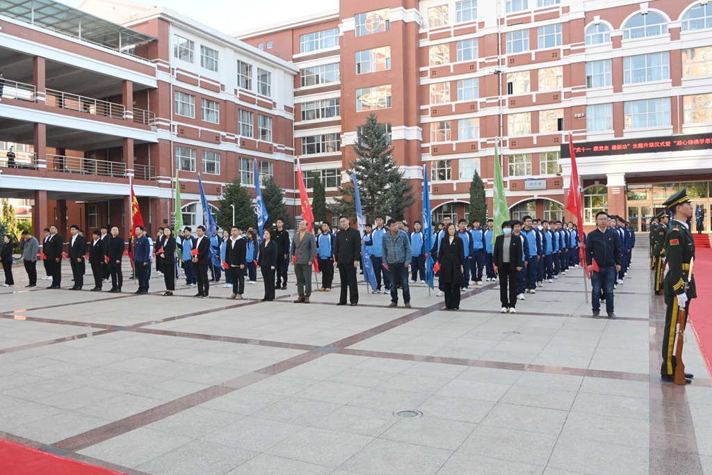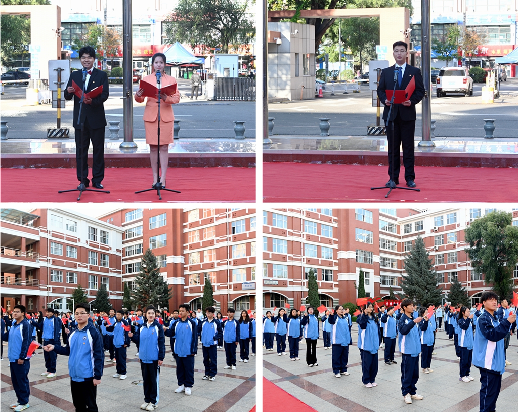 升旗仪式上,学校“青年学生党的创新理论宣讲团”进行了国旗下演讲《凝心铸魂学思想·昂扬奋进新征程》;共青团员代表、哲学与法学学院哲学211班孔繁硕,代表全校团员青年发言。