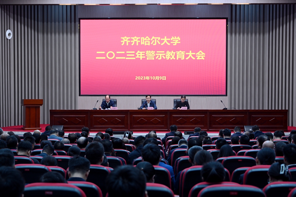 10月9日下午,学校在日新大厦四楼学术报告厅召开警示教育大会,纪委书记、党委常委陆占权出席会议,党委常委、组织部部长马文辉及全校正处级干部,2023年新提任干部,年轻领导干部,关键部门、重点岗位副科级以上干部参加会议。会议由纪委副书记、纪委办公室主任李秀梅主持。