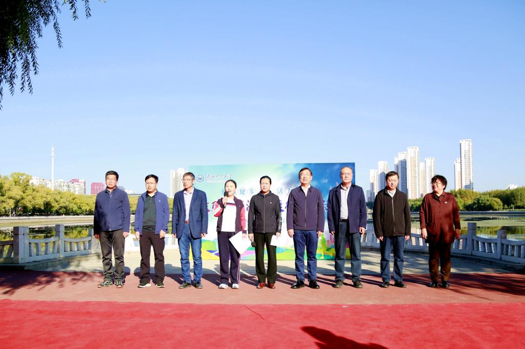 校长、党委副书记郝文斌宣布活动开始,伴随着发令枪声,各基层工会依次列队出发。环湖甬道上旗帜飘扬、人影攒动、身姿矫健,大家在指定地标建筑打卡、拍照,齐大人徒步运动成为秋日劳动湖畔一道亮丽的风景线。