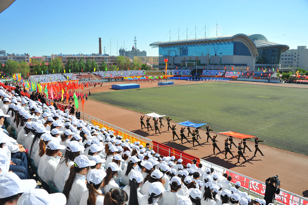 西区体育场上,方阵猎猎,彩旗招展;体育健儿,英姿飒爽。