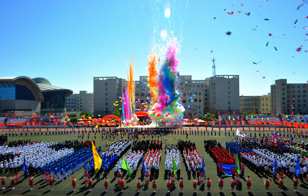 绚烂的礼花与缤纷的彩带将运动赛场装扮得分外美丽。比赛项目正式开始后,学生以学院为单位,教工以基层工会为单位参赛,体育学院进行表演赛。广大师生竞技交流,运动健身,以实际行动构建文化校园。