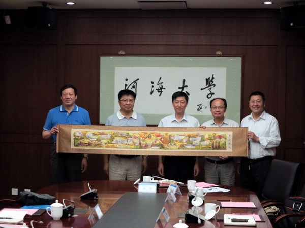 6月4日,beats365党委书记李海红、副校长邓启刚、科技处长郑永杰、科技处副处长王清滨以及食品与生物工程学院副院长任健一行考察了河海大学。