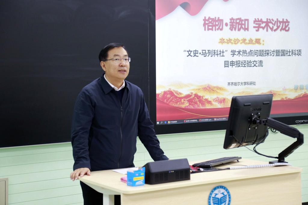 郝文斌代表学校在首期学术沙龙开幕式上致辞。他强调,举办学术沙龙有助于学术积累、学术对话、学术合作与学术创新,对推动学校科研工作迈上新台阶意义重大。一是活跃学校学术文化氛围,集思广益、群策群力,以格物为手段达到获取新知的目的;二是形成学术资源共享,以学术思想碰撞、跨学科交叉交融擦出新的学术火花;三是为青年教师搭建学术交流平台,以老带新、以新促新,为青年教师成长指点迷津、疏导前路;四是促进文理渗透融合,促进学术向生产力的转化;五是搭建校领导与青年学者联系的桥梁与媒介,及时解决大家在工作中遇到的问题与困惑。希望广大教师珍惜学校搭建的平台,积极参与学习交流,在真诚对话中答疑解惑,在互学互鉴中共赢发展,为学校高水平科研成果产出做出更大的贡献。