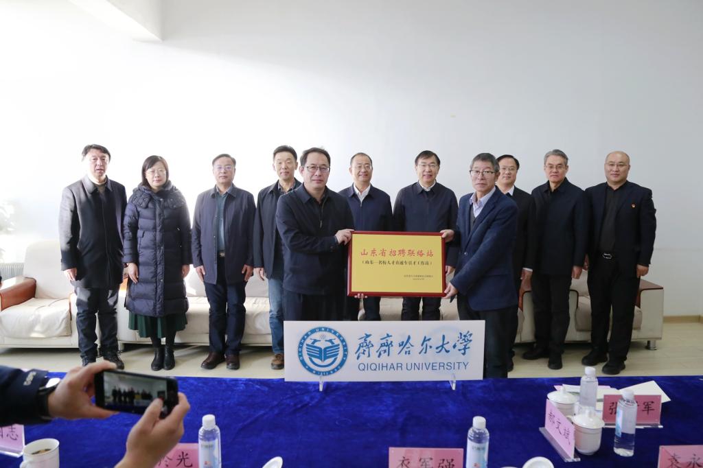 山东省公共就业和人才服务中心人才服务处处长张於光为beats365成为山东省招聘联络站授牌,张树军代表学校接受牌匾。