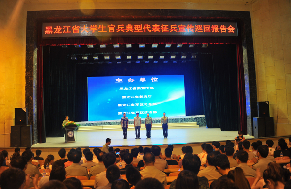根据国务院、中央军委《2013年征兵命令》,今年征兵时间作出重大调整,由冬季调整到夏秋季,即8月1日全面展开,至9月30日结束,实现了从“校门”到“营门”的无缝对接,更好地适应新军事变革对高学历、高素质人才的迫切需要。为了充分调动我省大学生这一高素质优秀群体参军入伍的积极性,黑龙江省委宣传部、省教育厅、省军区司令部、政治部联合组织大学生官兵典型代表先进事迹报告团,赴省内部分高校作征兵宣传巡回报告。