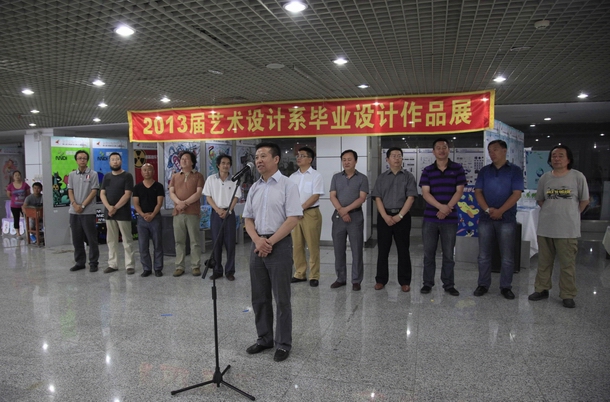 李英杰副校长在开幕式上讲话并宣布美术与艺术设计学院2013届艺术设计专业毕业设计作品展开幕。他指出,美术与艺术设计学院立足人才培养,注重发挥专业特色,不断优化专业结构。在教育过程中注重工艺结合,培养学生的创新能力。通过毕业设计展,充分展示同学们的创作灵感和设计才华,检验艺术设计专业四年来艺术设计教育的成果,是学院办学水平的一次集中体现。希望美术与艺术设计学院深入挖掘专业特色,培养学生的创新精神和艺术实践能力。希望广大毕业生脚踏实地、刻苦钻研,努力成为一个成功的设计人才。