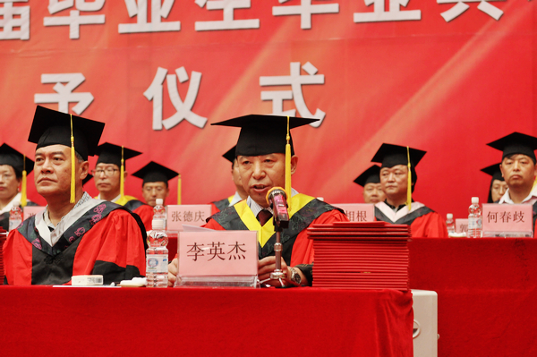 校长、学校学位评定委员会主任马立群为获得学位的优秀毕业生代表授予学位,正冠拨苏