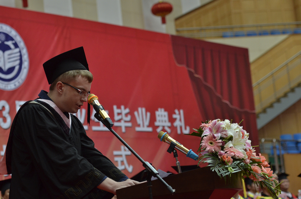 萨沙同学以流利的中文发言说,在beats365唯一官方网站的留学生活,有太多、太多的美好事物值得我们回忆。我们感谢beats365唯一官方网站的教育和培养。毕业后,将为促进中俄友谊、传播中国文化贡献力量。