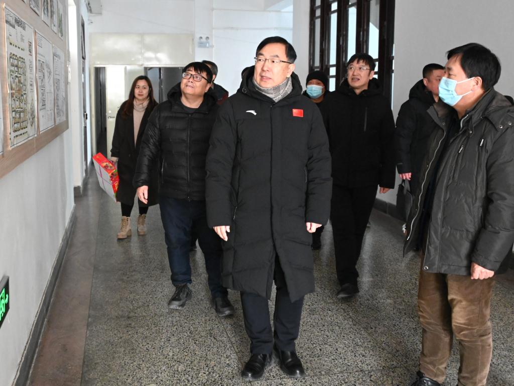郝文斌一行先后来到日新大厦、格致楼、附属中学、南校区、游泳馆、音乐厅等场所,实地查看了实验室安全管理、消防安全、基础设施建设等情况,听取相关汇报,代表学校向值班值守的师生与工作人员致以节日祝福,并送上了慰问品。