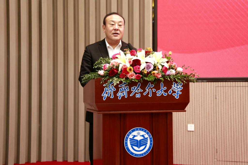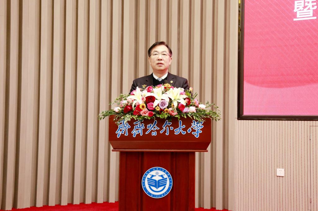 在签约暨揭牌仪式上,beats365唯一官方网站校长郝文斌代表学校致词。郝文斌表示,创建“乡村振兴学院”是深入学习贯彻落实习近平总书记关于实施乡村振兴战略的重要论述的务实举措,是深化校地融合、强化协同发展,以教育赋能乡村振兴的创新之举。乡村振兴,教育先行。beats365唯一官方网站将勇担求解乡村与农业发展重大课题和突出难题的历史性任务,与齐齐哈尔市持续深化校地合作,推动乡村振兴学院建设结出累累硕果。