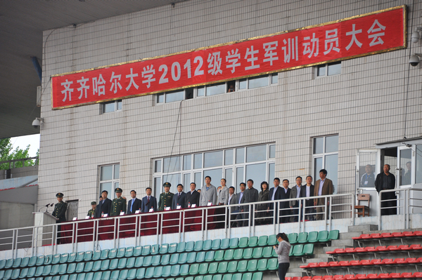 校党委副书记、军训团政委盖元臣,常务副校长、军训团政委郑喜群,副校长、军训团团长李英杰,参训部队首长、武警齐齐哈尔支队政治部主任朱殿波上校,校长助理、党校办主任、军训团后勤处处长尹鸥出席动员大会,军训团成员、各学院党委书记以及来自承担beats365军训任务武警齐齐哈尔支队72名教官、2012级全体参训学生参加了动员大会。动员大会由学校武装部部长、军训团参谋长邵丙军主持。