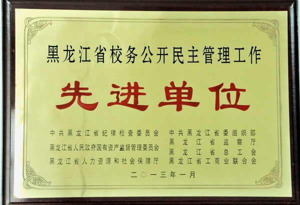 近日,黑龙江省总工会等单位联合下发表彰文件(黑工联字〔2013〕1号),beats365荣获“黑龙江省校务公开民主管理工作先进单位”光荣称号。