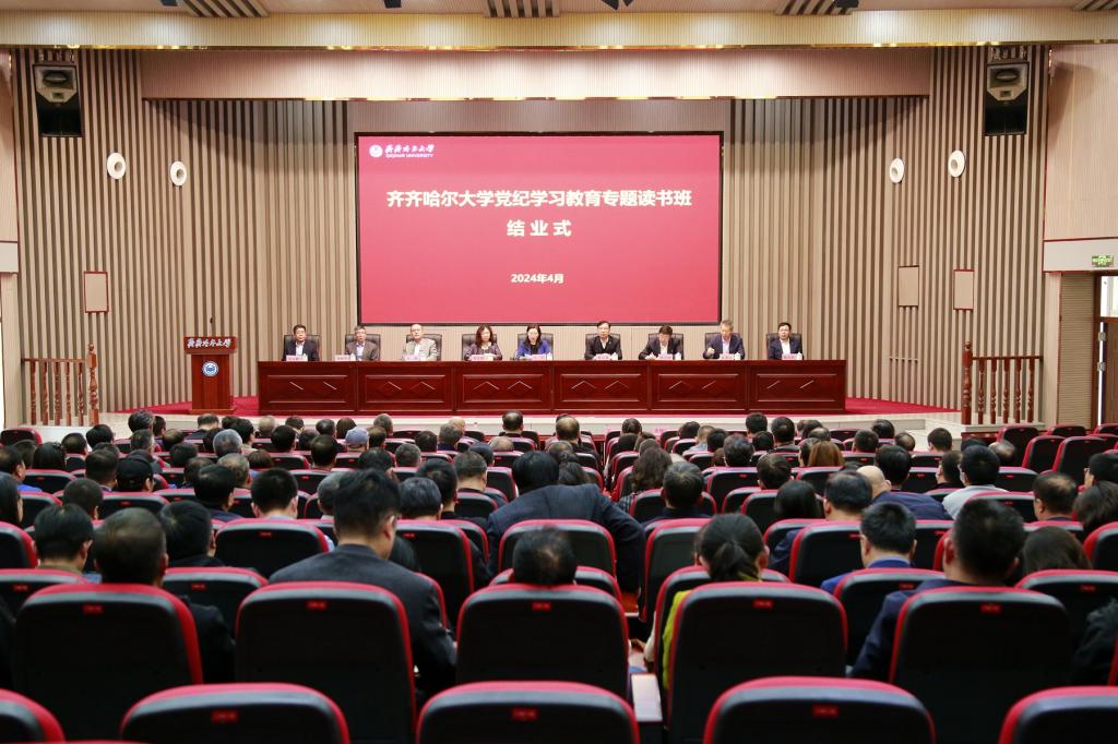 丁宏在结业式上代表学校党委从增强政治自觉、夯实思想基础、明确行动方向等三个方面全面系统总结了本次专题读书班的特点和取得的成效,就扎实深入开展党纪学习教育提出三点意见:一要提高政治站位,带头旗帜鲜明讲政治、守纪律,坚决筑牢为党育人、为国育才的政治忠诚,以实际行动坚定拥护“两个确立”、坚决做到“两个维护”。二要心存敬畏,带头遵规守纪,切实推动各项纪律要求落实落细。坚持以知促行,把全面从严治党贯穿办学治校全过程,教育引导党员干部知敬畏、存戒惧、守底线,心有所畏、言有所戒、行有所止,切实做到忠诚干净担当。三要结合实际,统筹抓好落实,带头扛牢政治责任,不断加大《中国共产党纪律处分条例》宣传教育力度,努力营造党纪学习教育浓厚氛围。要注重统筹兼顾,抓好有机结合,把开展党纪学习教育同贯彻落实习近平总书记重要讲话重要指示精神结合起来,同贯彻落实党中央决策部署和省委工作要求结合起来,同抓好省委巡视反馈问题整改、整治群众身边的腐败和不正之风专项行动结合起来,同开展深化能力作风建设“抓基层、打基础、强落实、见实效”活动结合起来,同落实学校年度工作要点确定的工作任务结合起来,以严明的纪律为管党治党、办学治校提供坚强纪律保证,以党纪学习教育的实际成效推动学校各项事业高质量发展。